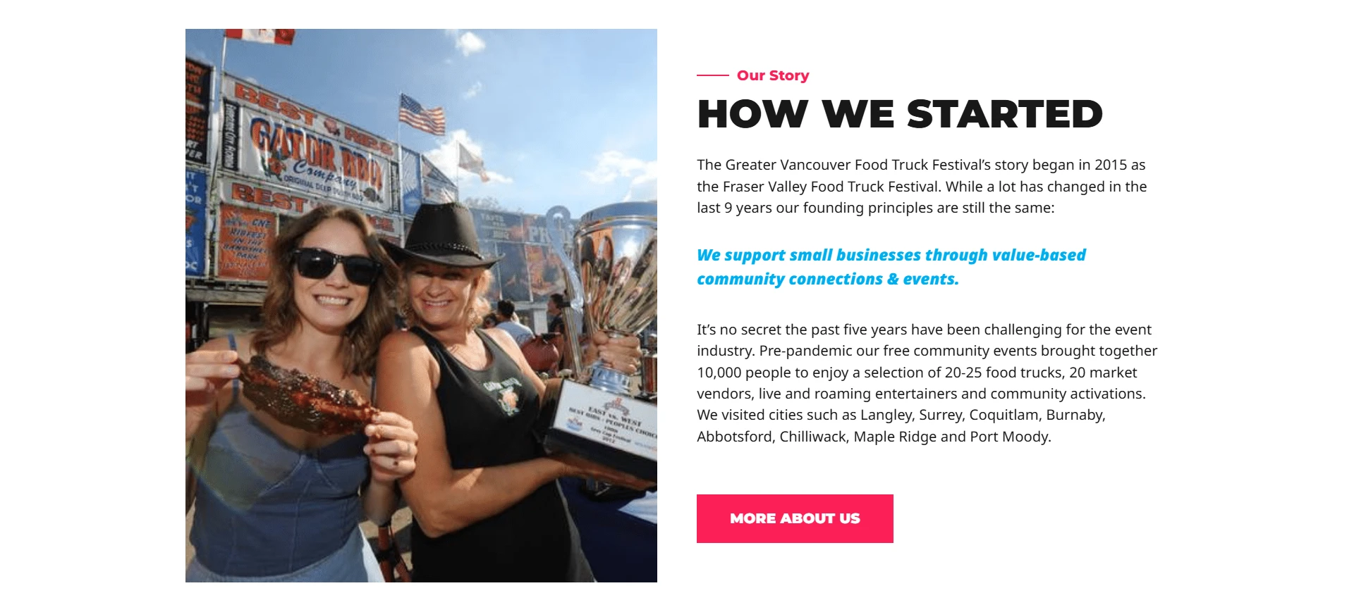 Greater Vancouver Food Truck Festival is a community-driven event bringing together local vendors and food lovers across multiple locations. This project was a website revamp focused on making the experience more organized, easier to navigate, and better suited for showcasing events and updates.