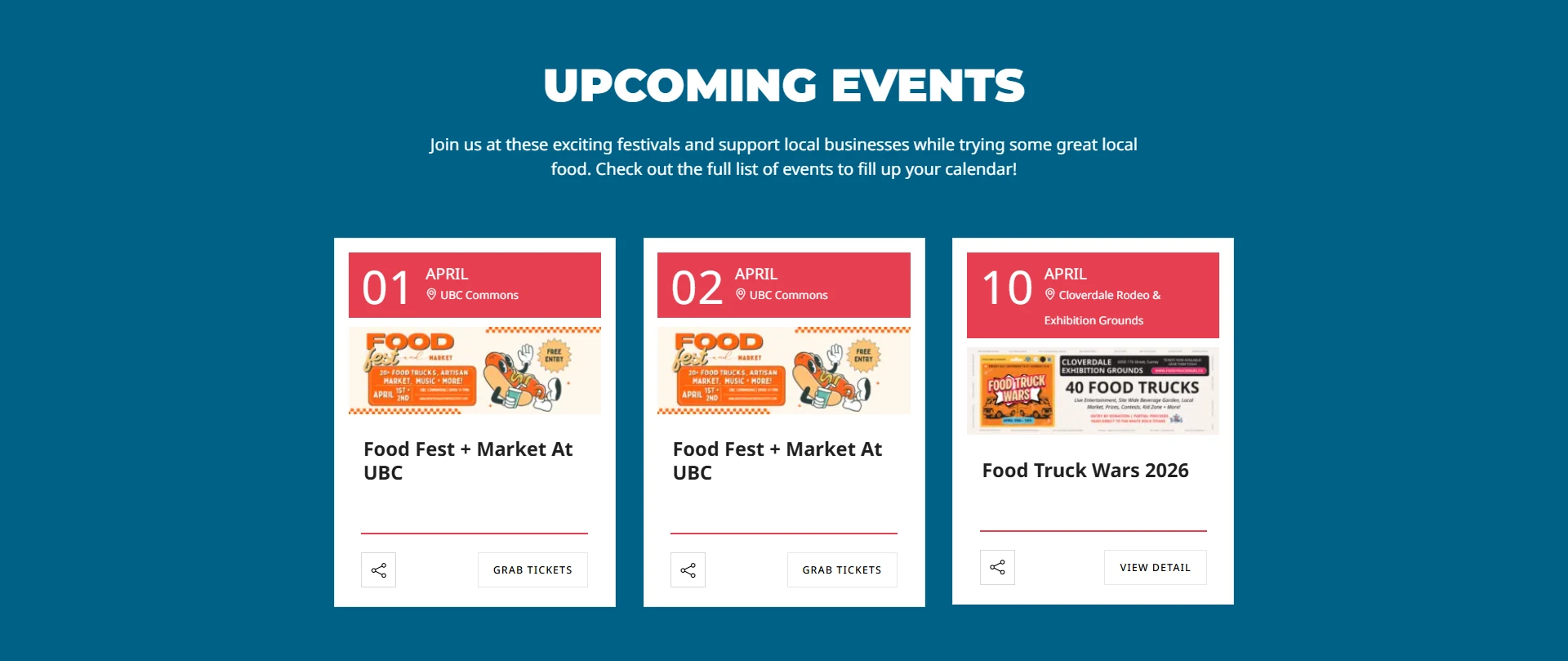 Event website design for food truck festivals and local events