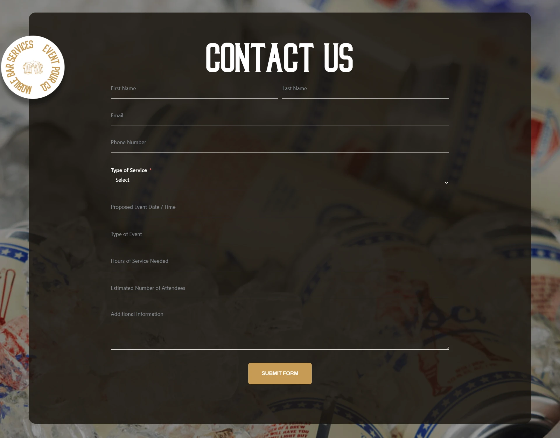 Website design for mobile bar and event service businesses